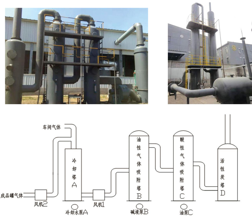 各種瀝青基防水材料的生產過程中,需對瀝青進行加熱、輸送并制成滿足各種工藝要求的瀝青類混合料供生產使用。在此工藝過程中,會產生大量的瀝青煙氣。煙氣中含有多種有機物,包括碳環烴、環烴衍生物及其它化合物,有不少對人身健康有危害作用,瀝青煙含有苯并芘、苯并蒽、咔唑等多種多環芳烴類物質”, 且大多是致癌和強致癌物質,粒徑多在0.1~1 .0μm之間小的僅0. 01μm,大的約為10. 0μm,尤其是以3 , 4-苯并芘為代表的多種致癌物質。其危害人體健康的主要途徑是附著在8um以下的飄塵上,通過呼吸道被吸人體內。因此,對瀝青煙氣進行凈化治理,使排放滿足大氣環境標準,是非常必要的。
